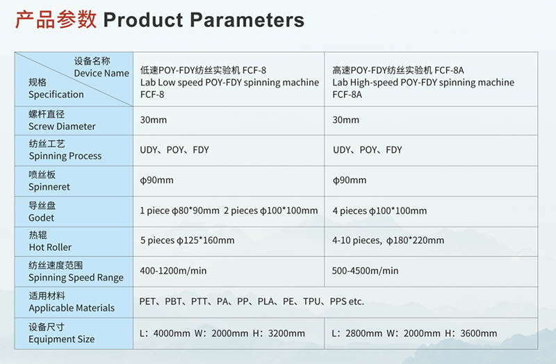 FDY紡絲機(jī) FCF-8是根據(jù)滌綸、錦綸高速紡絲工藝特點(diǎn),集POY、FDY紡絲為一體的紡絲實(shí)驗(yàn)設(shè)備。FDY紡絲機(jī)適用于紡50D-150D或100D~300D滌綸、錦綸POY或FDY長(zhǎng)絲。